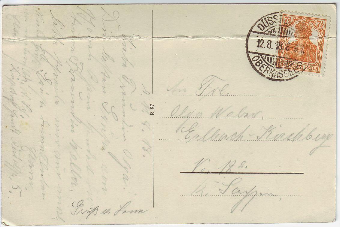 AK Düsseldorf Am Wilhelmsplatz Menschen mit Straßenbahn 1918
