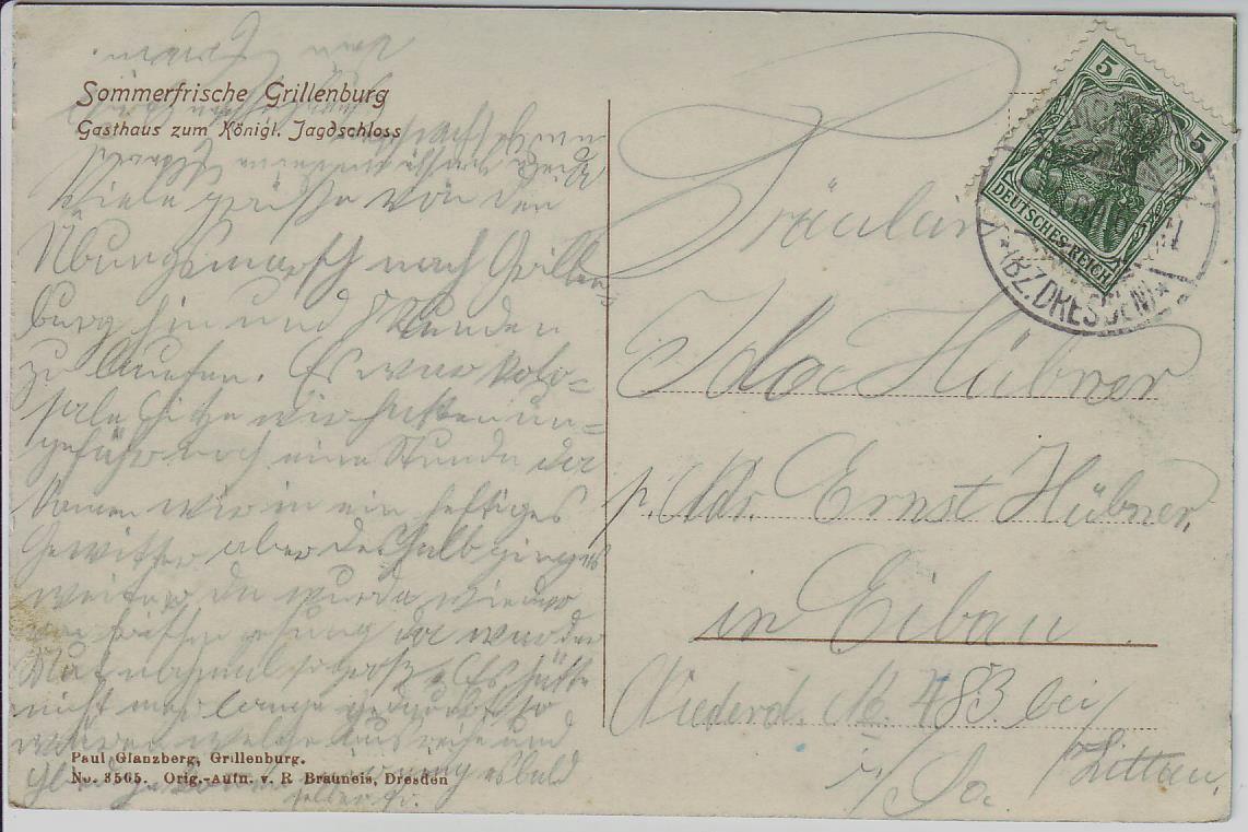 AK Sommerfrische Grillenburg Gasthaus zum Königl. Jagdschloss bei Tharandt 1909 RAR
