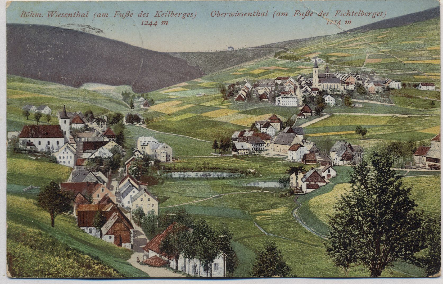 AK Oberwiesenthal am Fuße des Fichtelberges mit Böhmisch Wiesenthal 1925