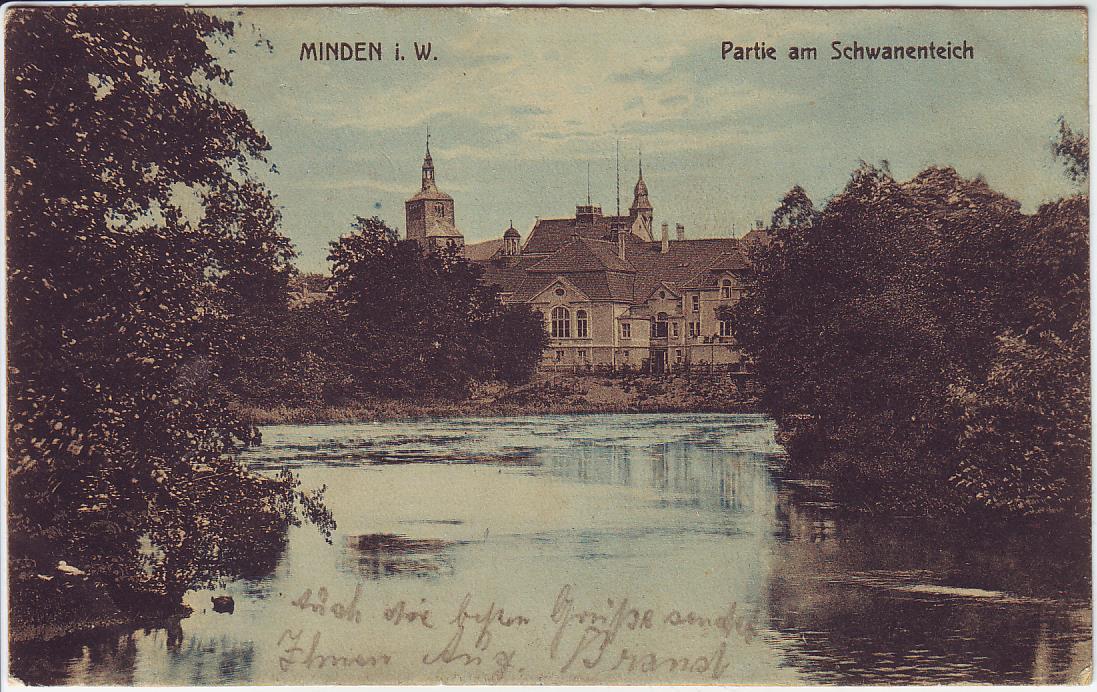 AK Minden in Westfalen Partie am Schwanenteich 1911