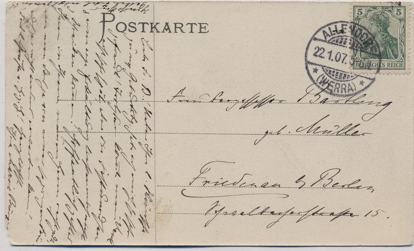 Gelaufen 1907 mit Marke.