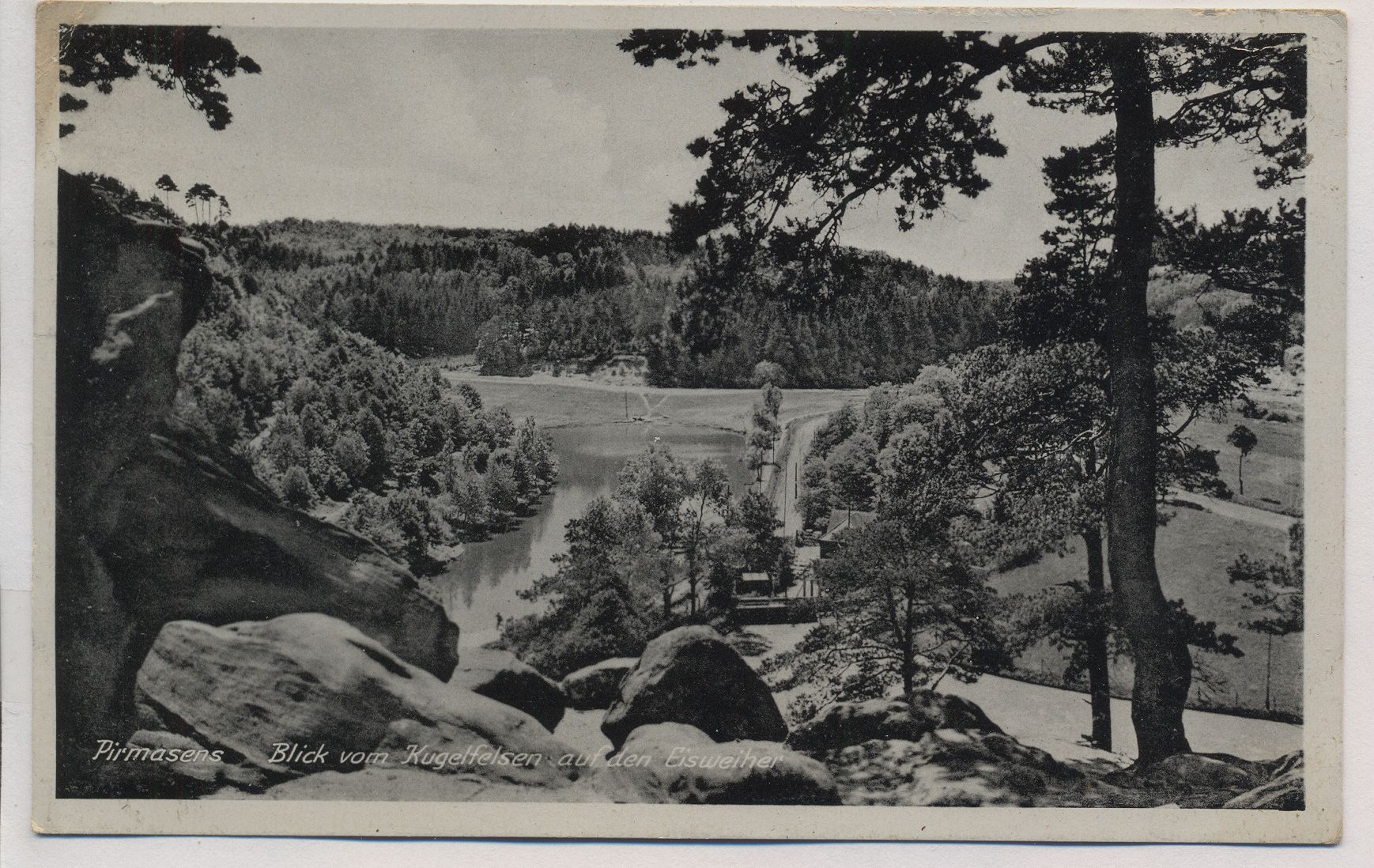 AK Foto Pirmasens Blick vom Kugelfelsen auf den Eisweiher Feldpost 1942