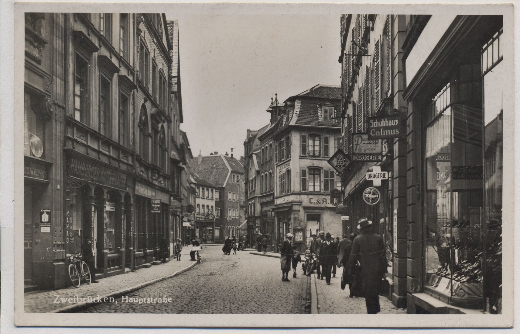 AK Foto Zweibrücken Hauptstraße viele Geschäfte Menschen 1935 RAR