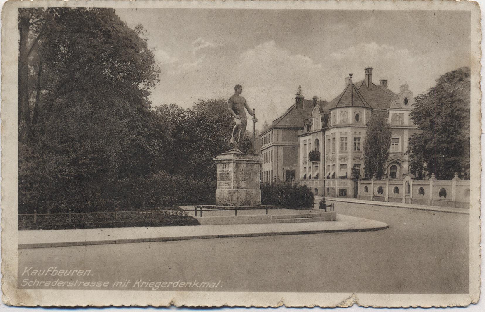 AK Kaufbeuren Schraderstraße mit Kriegerdenkmal 1915