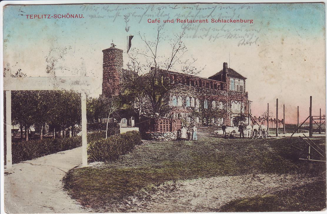 AK Teplitz-Schönau Teplice Cafe und Restaurant Schlackenburg Böhmen Tschechien 1912